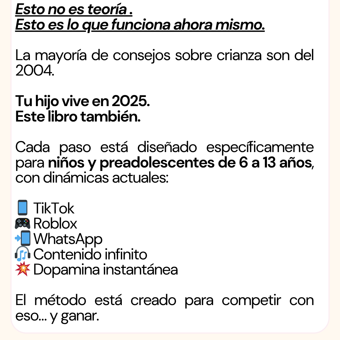 Es el primer mĂ©todo comprobado en Argentina, práctico, emocional y diseñado para familias reales, donde los chicos aprenden a usar la tecnologĂa con equilibrio y sin conflictos.